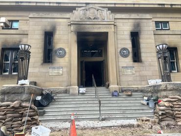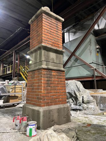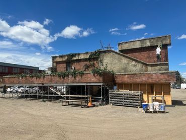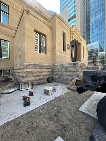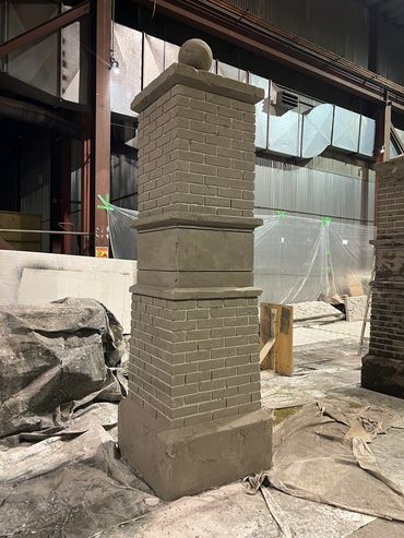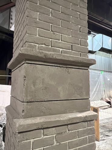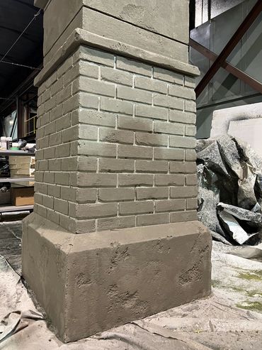 - Carving in Expanded Polystyrene foam various brick sheets, rock retaining walls and sandstone bricks to be part of an add-on extension copy to and existing building.
